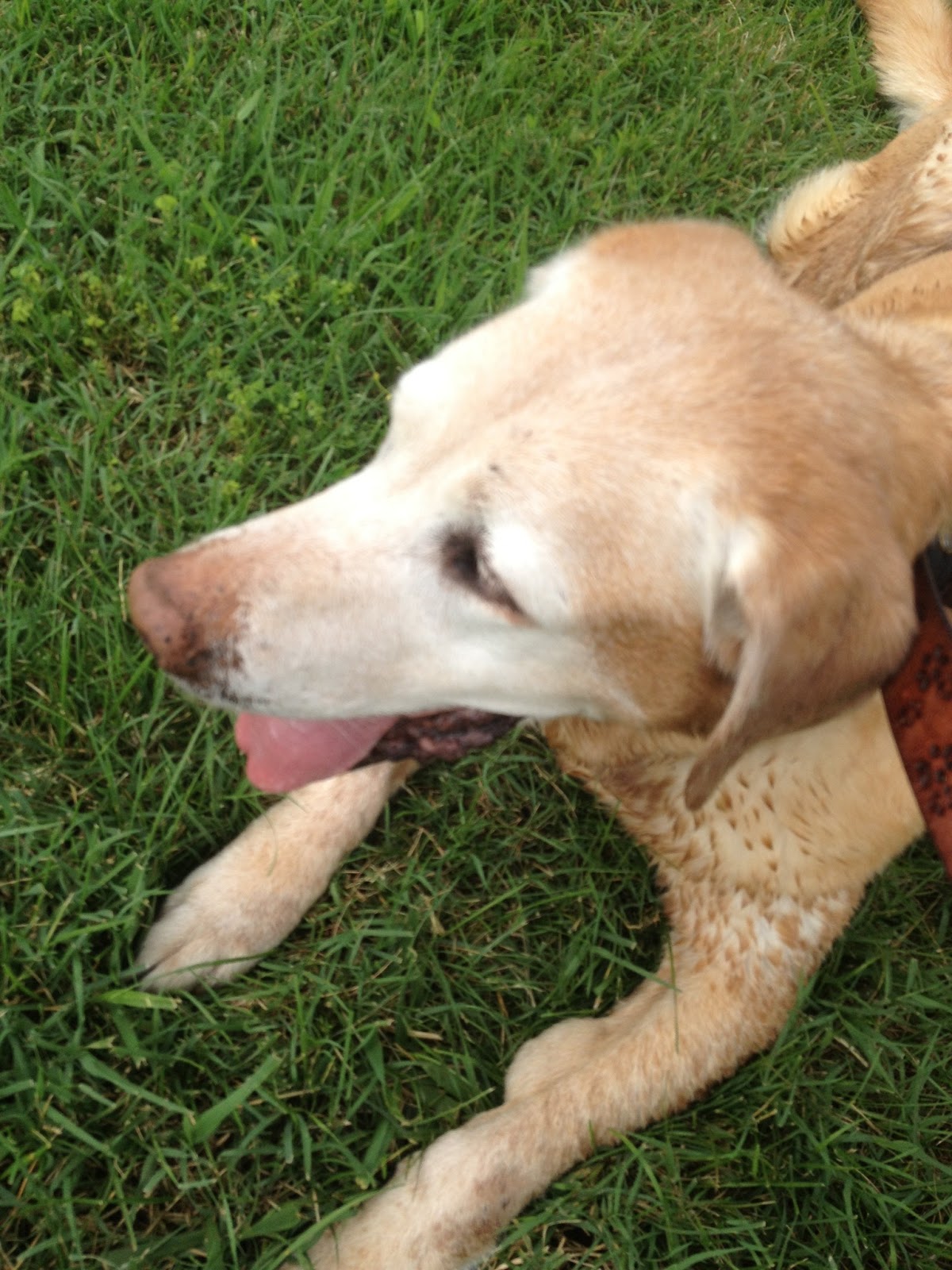 P.S. Lest you think I’m leaving you hanging: The owner came and met me shortly thereafter. The dog, Sarah, was a 13-year-old golden mix. She’d been out in the yard with him while he cut the grass; he startled a group of deer and she took off after them. She wasn’t hurt as I had first thought, just old and tired from her adventure.